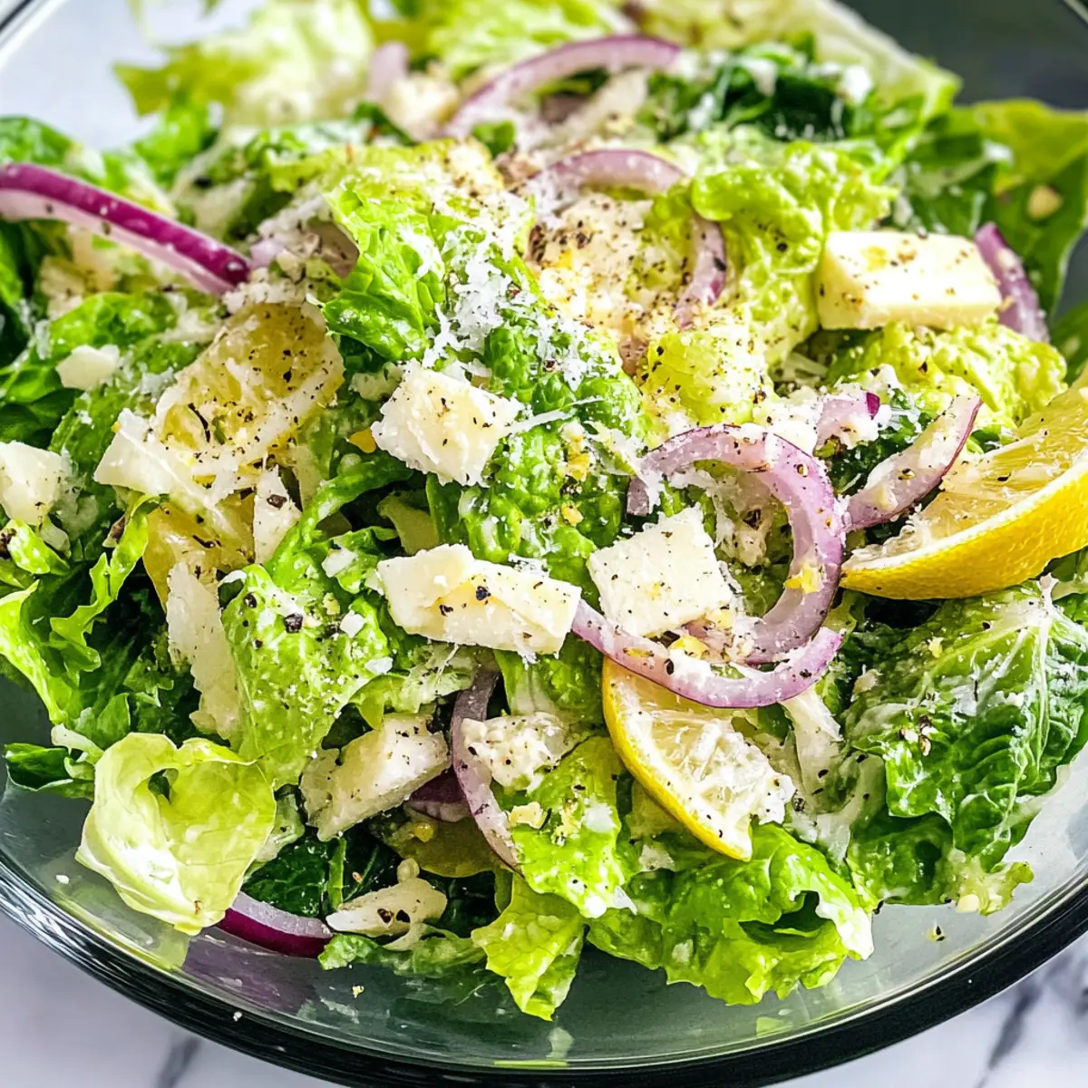 Dieser 5-Minuten Zitronen Parmesan Kopfsalat ist ideal für die Vorbereitung, um dir wertvolle Zeit während hektischer Tage zu sparen! Du kannst das Dressing bis zu 3 Tage im Voraus zubereiten und im Kühlschrank aufbewahren – so bleibt es frisch und lecker. Bereite zudem den Romaine-Salat und die rote Zwiebel am Vortag vor, indem du sie gründlich wäschst, trocken tupfst und in einem luftdichten Behälter im Kühlschrank lagerst, um die Knackigkeit zu bewahren. Am Tag des Servierens mischst du einfach Salat und Dressing in einer Schüssel oder auf einem Teller und genießt dein frisch zubereitetes Gericht in wenigen Minuten. So hast du leckeren, gesunden Geschmack mit minimalem Aufwand!