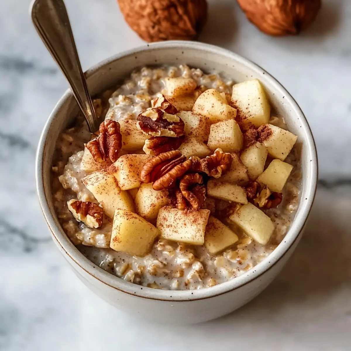- Optional Toppings – Extra gewürfelte Äpfel, gehackte Nüsse (wie Walnüsse oder Pekannüsse), Rosinen oder ein Löffel Erdnussbutter für zusätzliche Geschmacksnuancen und Textur.