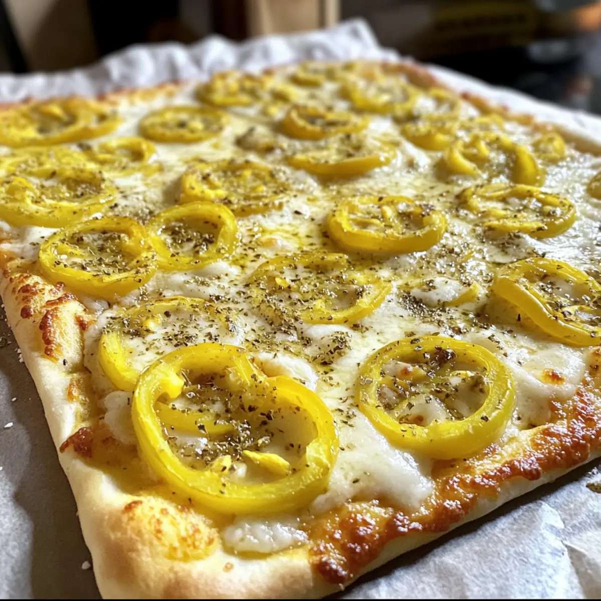 Kreativer Genuss: Diese Bananenpfeffer Pizza hebt die klassische Pizza auf ein neues Niveau und überrascht mit ihrer geschmacklichen Vielfalt.