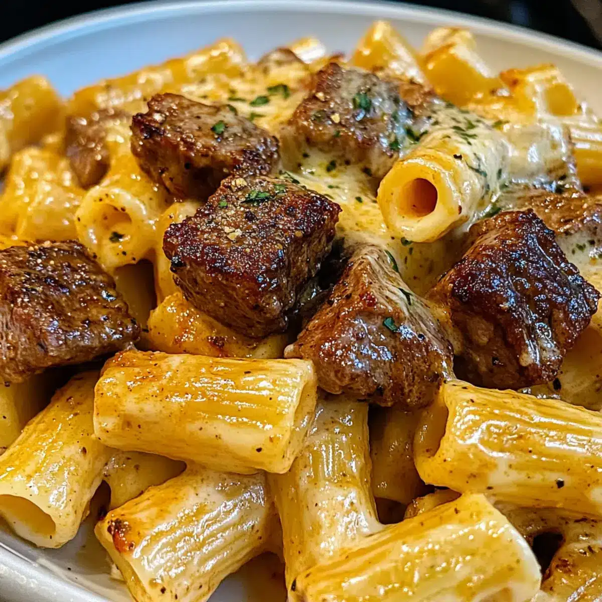 Wenn der Duft von frisch gebratenem Steak und cremiger Käsesauce durch die Küche zieht, möchte man am liebsten sofort loslegen! Mit meinen Cajun Steakstücken in käsiger Rigatoni-Parmesansauce bringe ich ein Stück Steakhaus-Genuss direkt zu Ihnen nach Hause. Diese Kombination aus zarten, würzigen Steakwürfeln und dem herzhaften Geschmack von rigatoni Pasta verleiht Ihnen das Gefühl von purem Komfort. Ideal für hektische Wochentage oder um Ihre Gäste bei besonderen Anlässen zu überraschen—dieses Rezept ist ein Genuss, den man sich nicht entgehen lassen sollte. Und das Beste? Es ist anpassbar für jeden Geschmack, sogar glutenfrei! Ich kann es kaum erwarten, Ihnen zu zeigen, wie einfach es ist, diese köstliche Mahlzeit zuzubereiten. Sind Sie bereit, Ihre Küche in einen kulinarischen Hotspot zu verwandeln?
