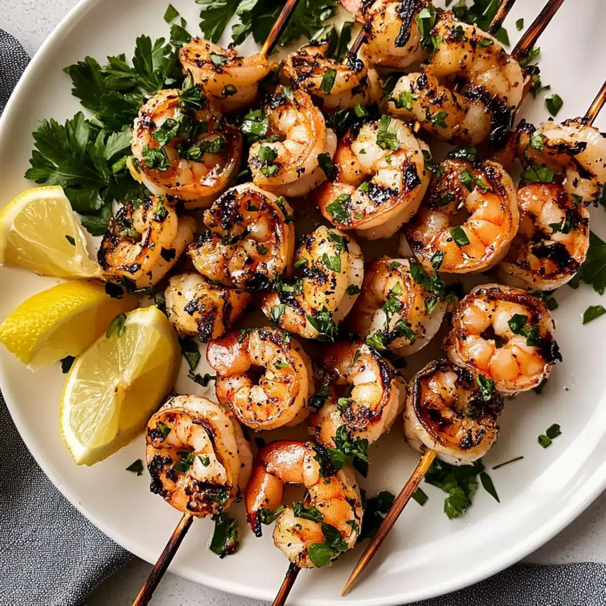 Eingelegte gegrillte Garnelenspieße für jeden Anlass