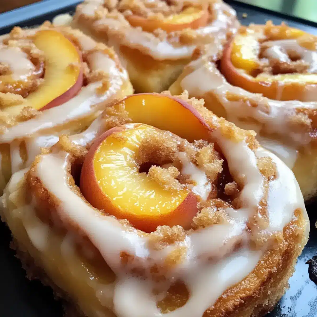 Pfirsich-Cobbler-Zimtschnecken für ein süßes Frühstück