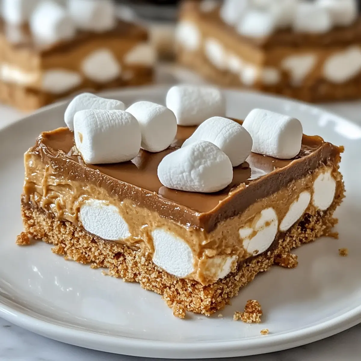 Erdnussbutter-Marshmallow-Quadrate ohne Backen