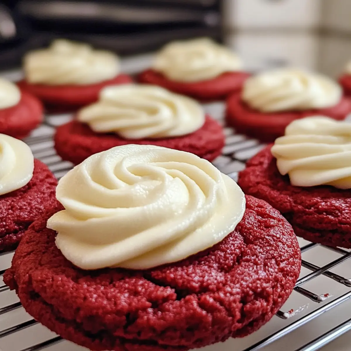 Kauende rote Samtplätzchen mit Frischkäse-Frosting