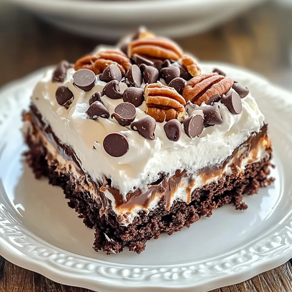 Schildkröten-Schokoladen-Poke-Kuchen mit Karamellgenuss