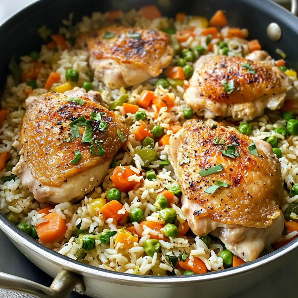 Knochenlose Hähnchenschenkel und Reis im Dutch Oven