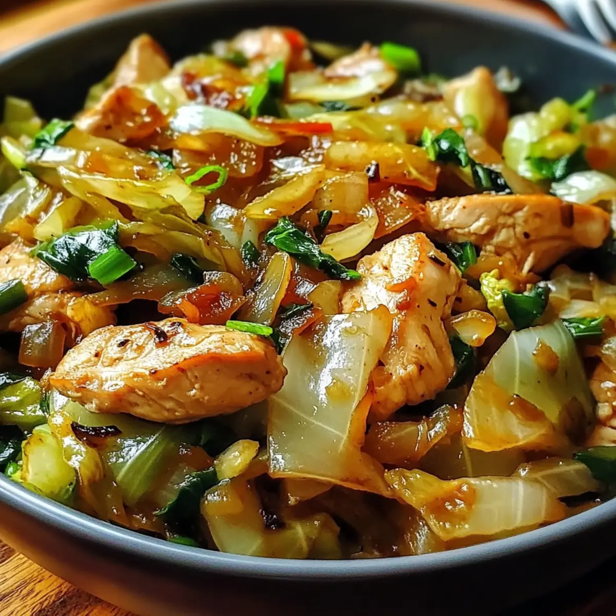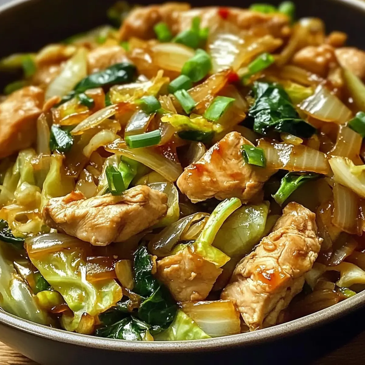 Chinesisches Hähnchen Zwiebel Kohl Pfanne für Schnelle Abende