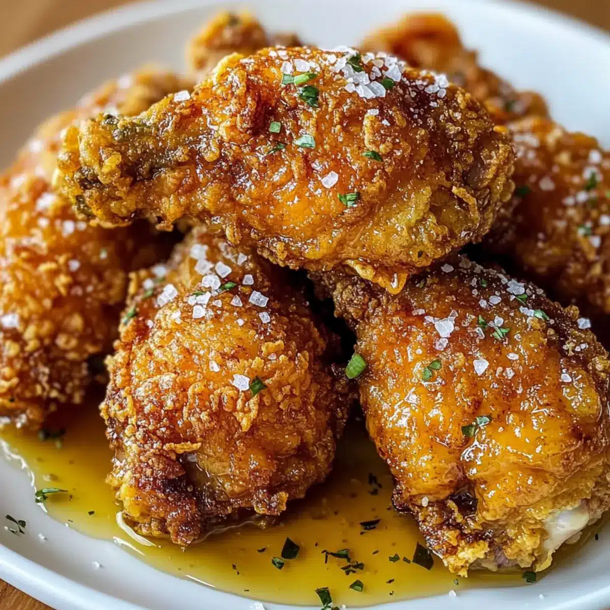 Eingelegtes frittiertes Hähnchen mit Honig genießen