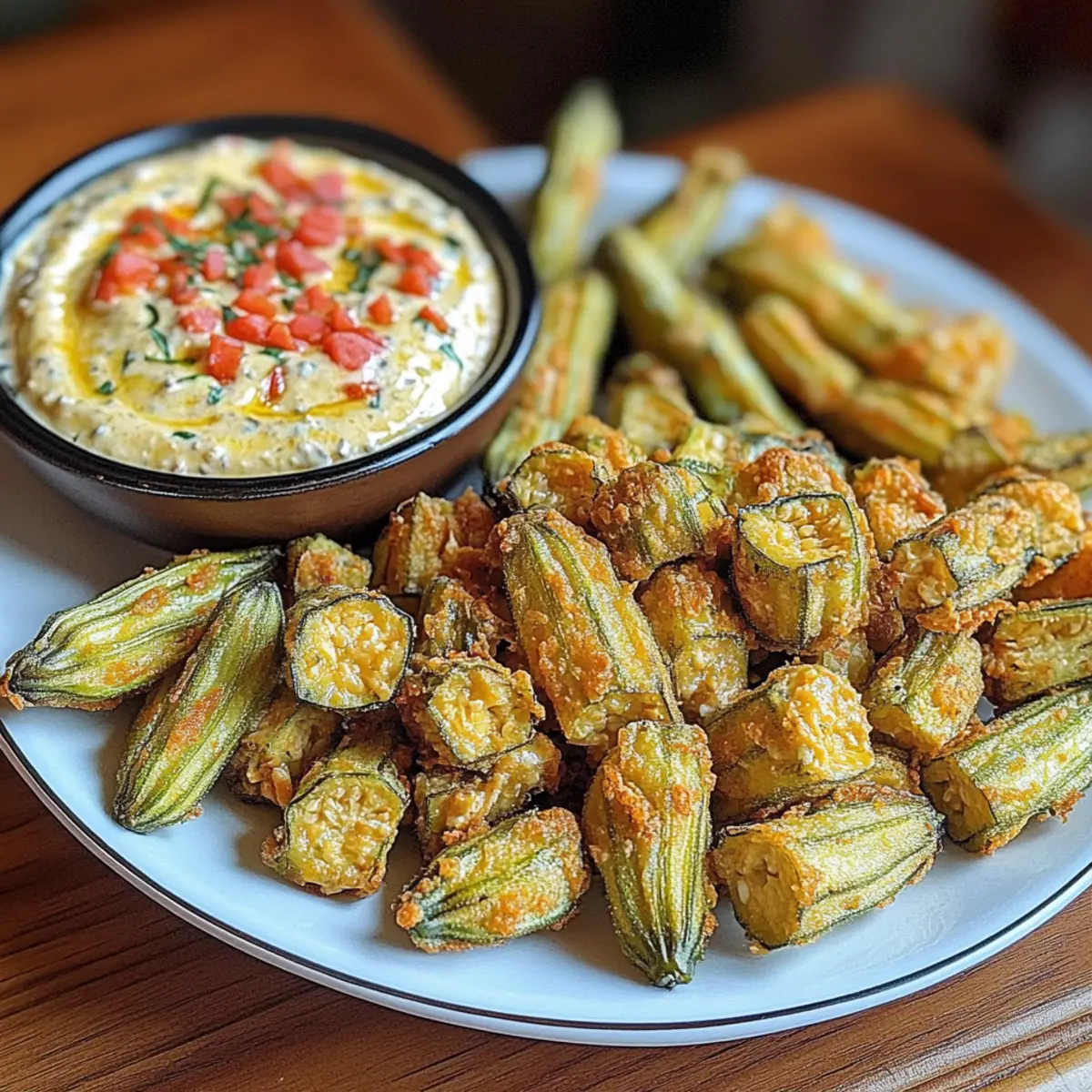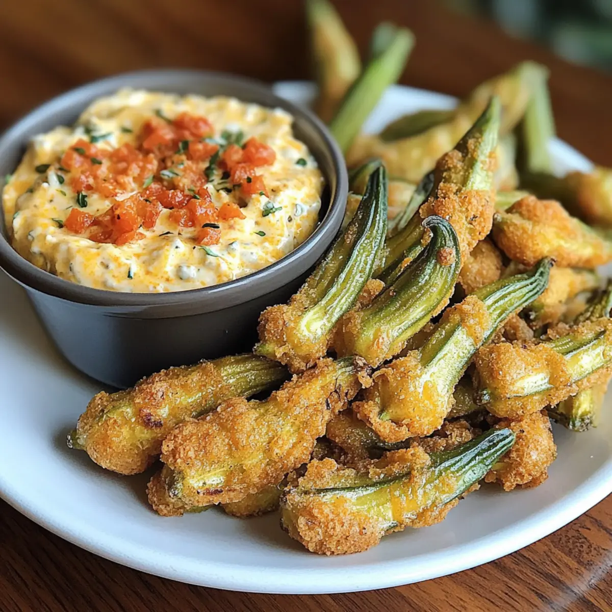 Tauche ein in die Welt von frittierter eingelegter Okra mit Pimento Käse und genieße diese köstliche Kombination!