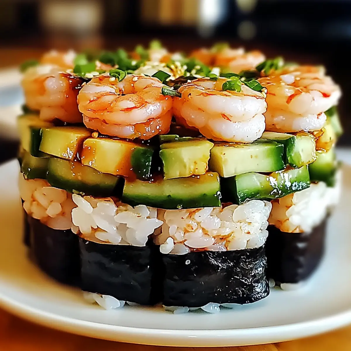 Einfachheit: Die Zubereitung der Garnelen-Sushi-Stapel erfordert nur grundlegende Kochfähigkeiten und wenig Zeit — perfekt für einen frischen Wochenend-Lunch oder ein schnelles Abendessen unter der Woche.