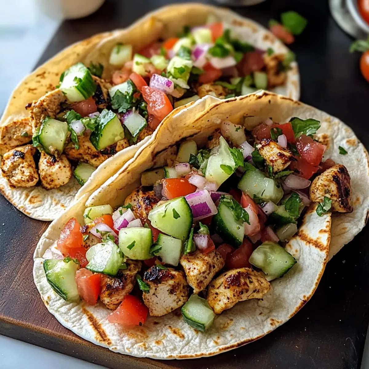 Vielseitigkeit: Diese Gegrillten mediterranen Hühnchen-Tacos lassen sich leicht anpassen, sodass du mit verschiedenen Gemüse- und Gewürzkombinationen experimentieren kannst.