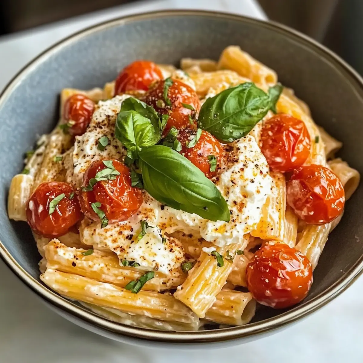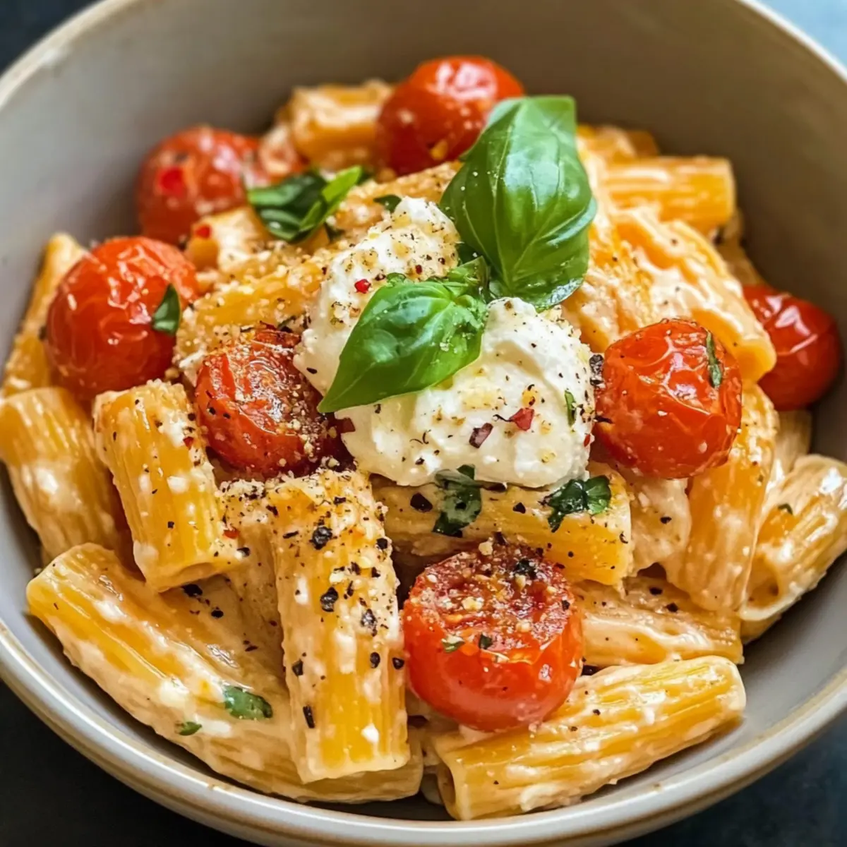 Einfachheit in Vollendung: Dieses Rezept für Geröstete Tomaten und Knoblauch Ricotta Pasta ist kinderleicht und benötigt keine komplizierten Kochfähigkeiten.