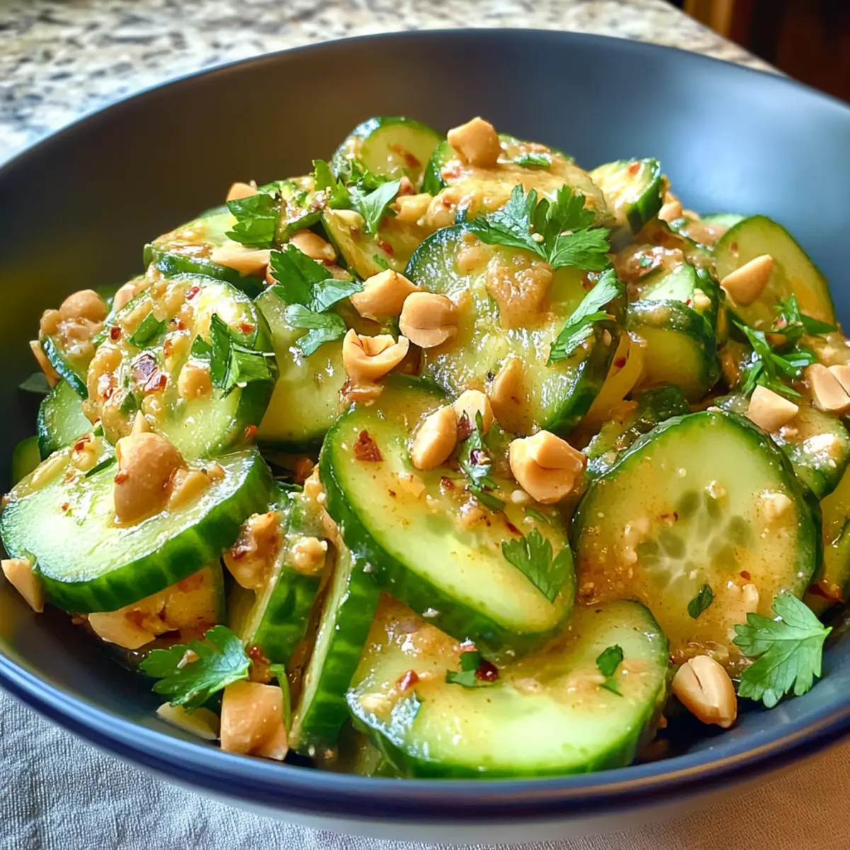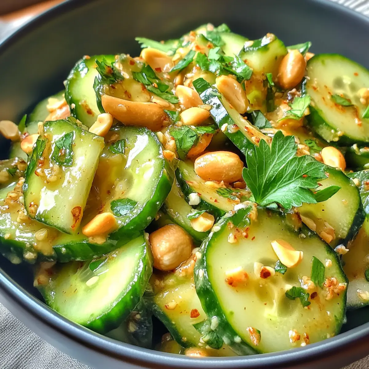Dieser glutenfreie würzige Erdnuss-Gurken-Salat wird dich mit seinem aromatischen Kick und der erfrischenden Leichtigkeit begeistern!