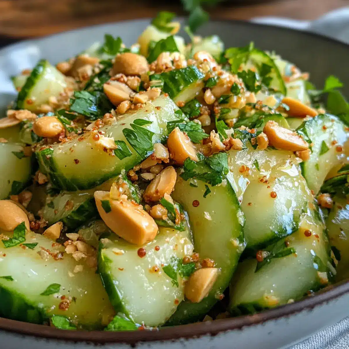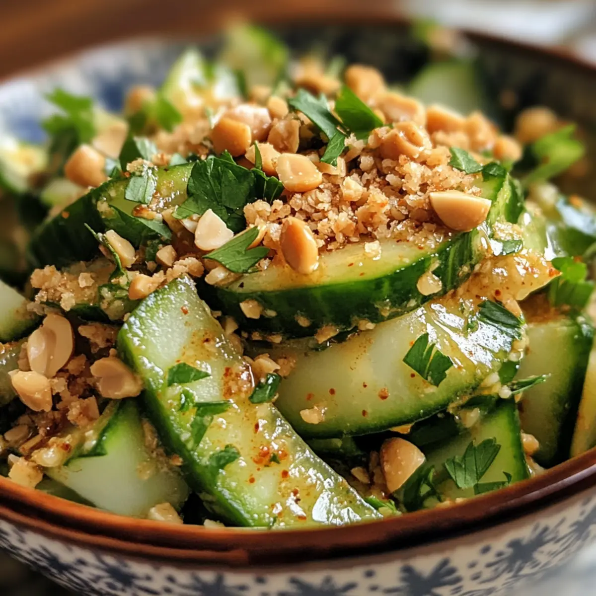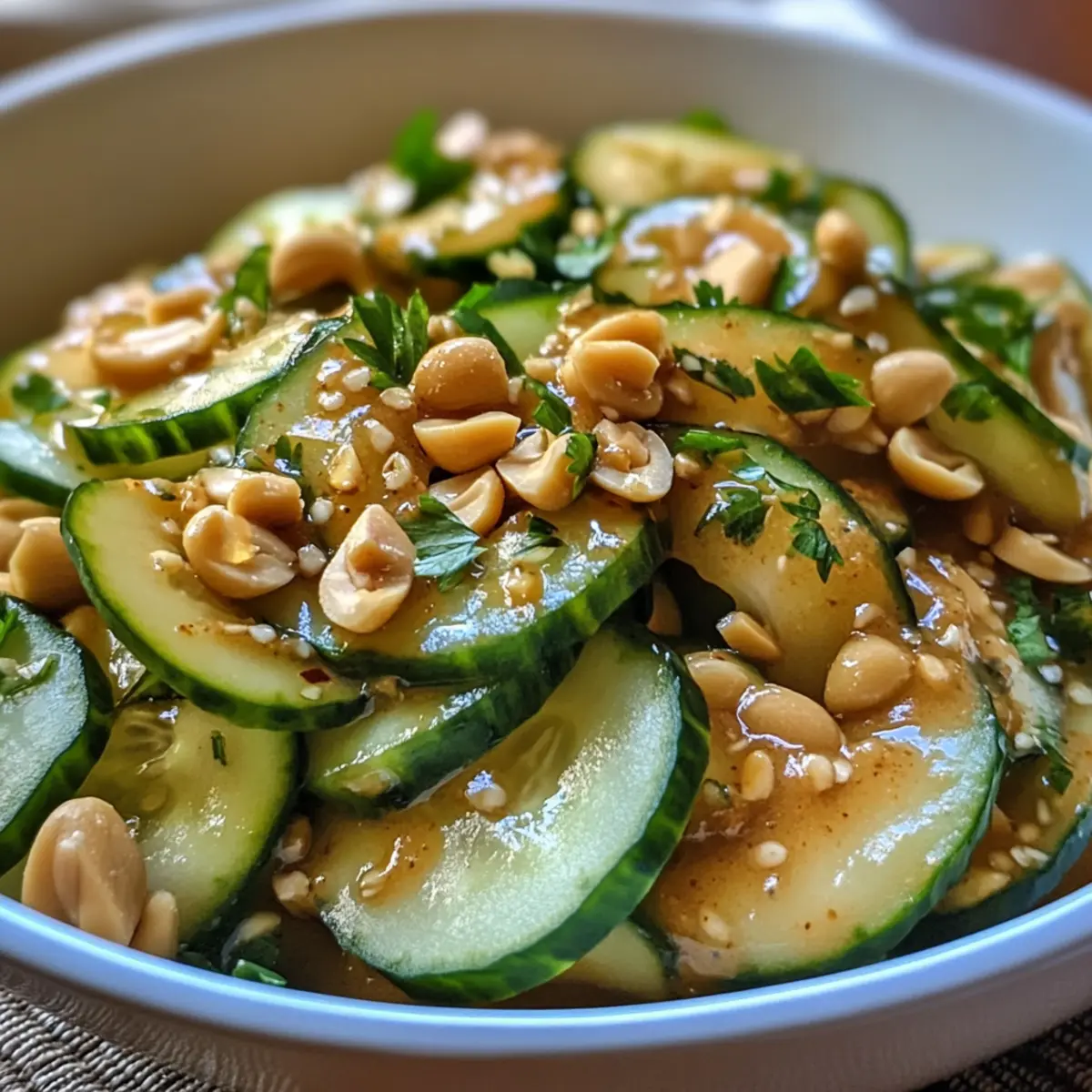 Genieße die frischen Aromen dieses glutenfreien würzigen Erdnussgurkensalats, der jeden Bissen zu einem Erlebnis macht!