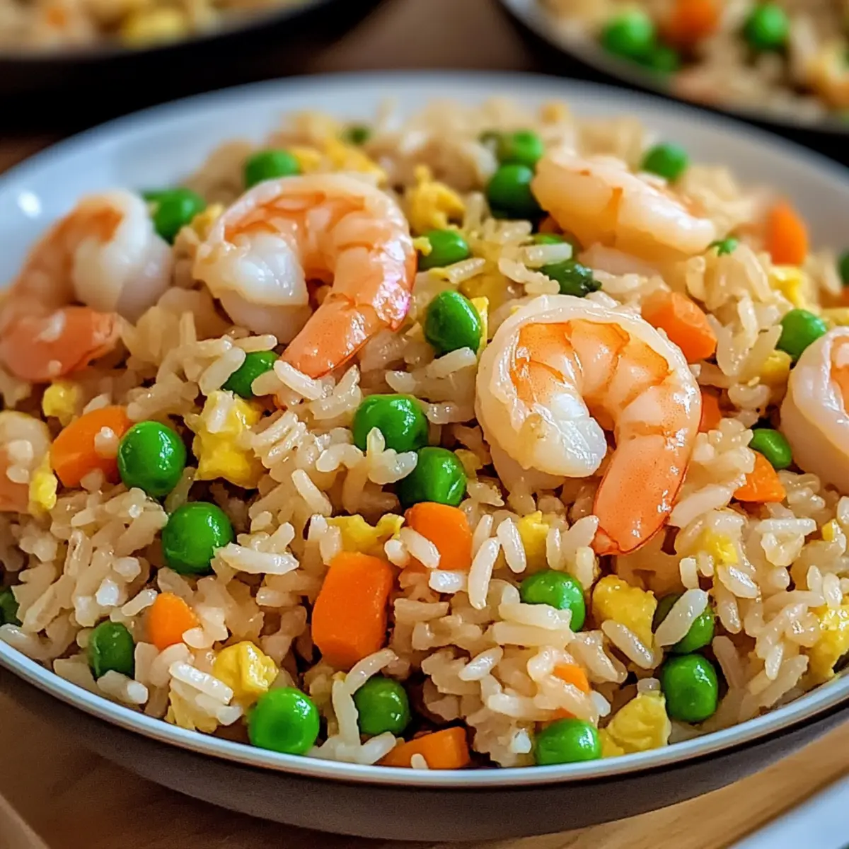 Abenteuerlust zeigen: Experimentiere mit verschiedenen Proteinquellen, wie Hühnchen oder Tofu, um deinen herzhaften Garnelen gebratenen Reis individuell zu gestalten.