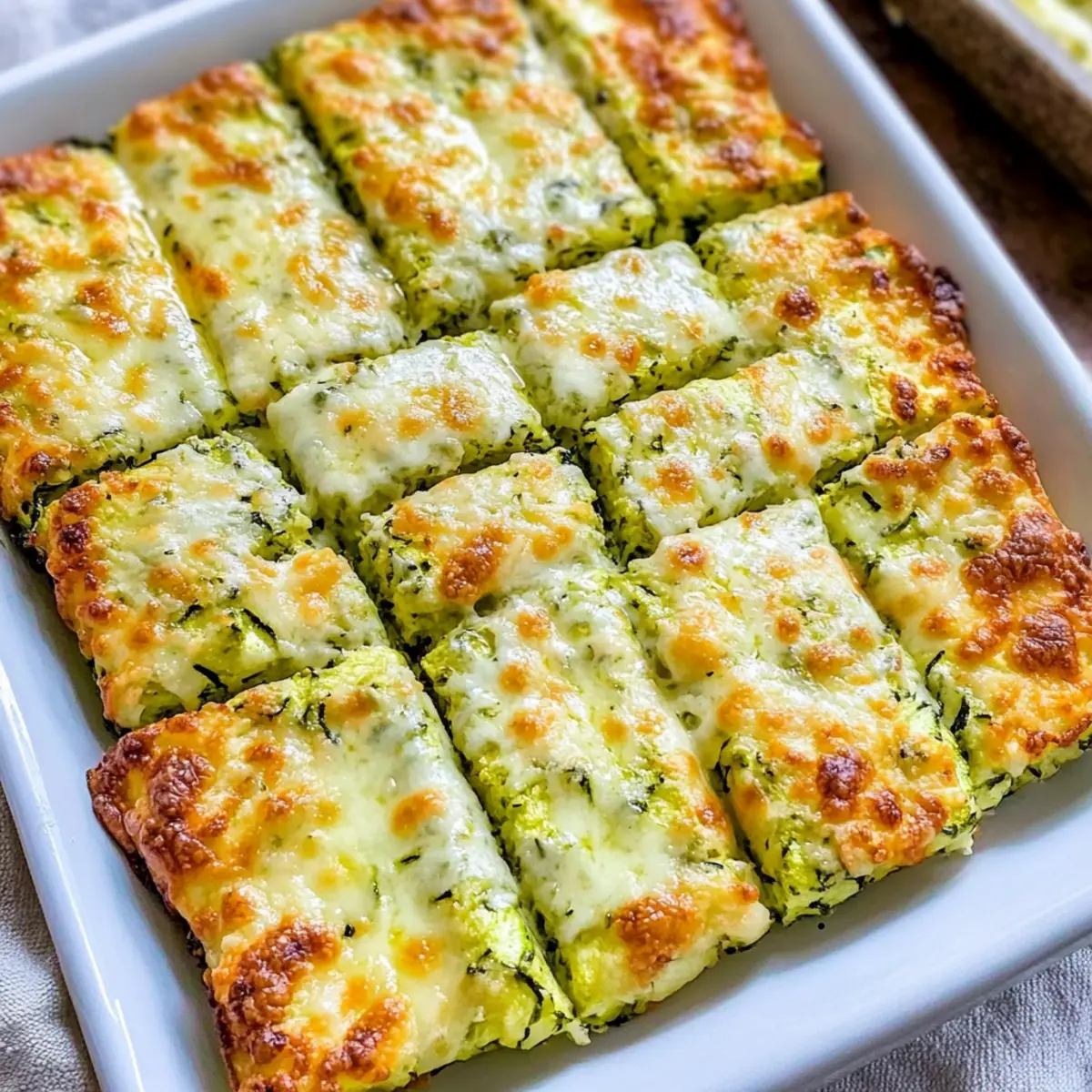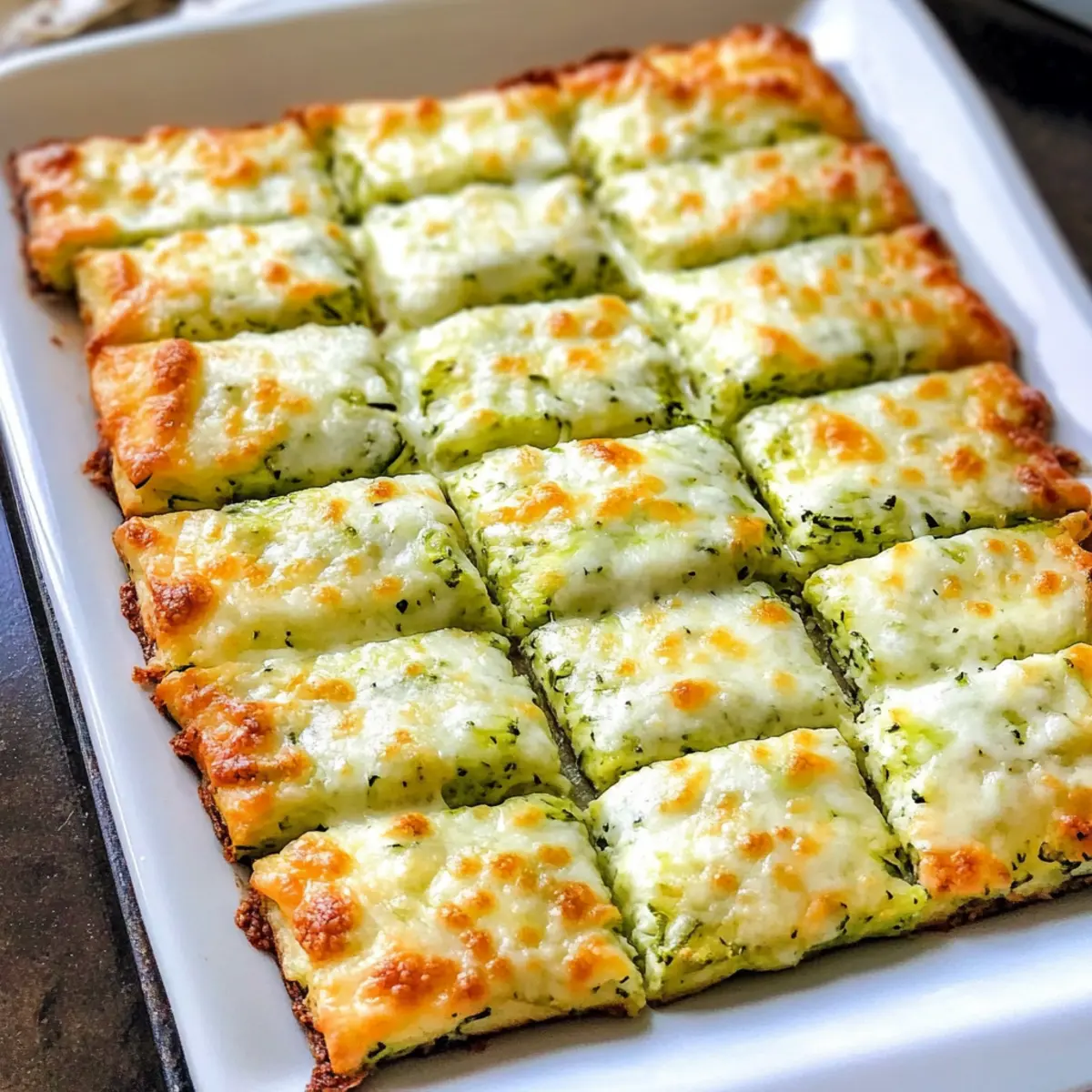 Pizza-Stil: Verteile deine Lieblings-Pizzabeläge wie Paprika, Oliven oder sogar Salami auf der Zucchini-Masse, bevor du sie backst. So erhältst du eine leckere, käsige Pizza-Variante in Brotstick-Form.