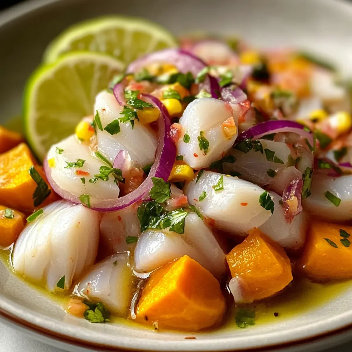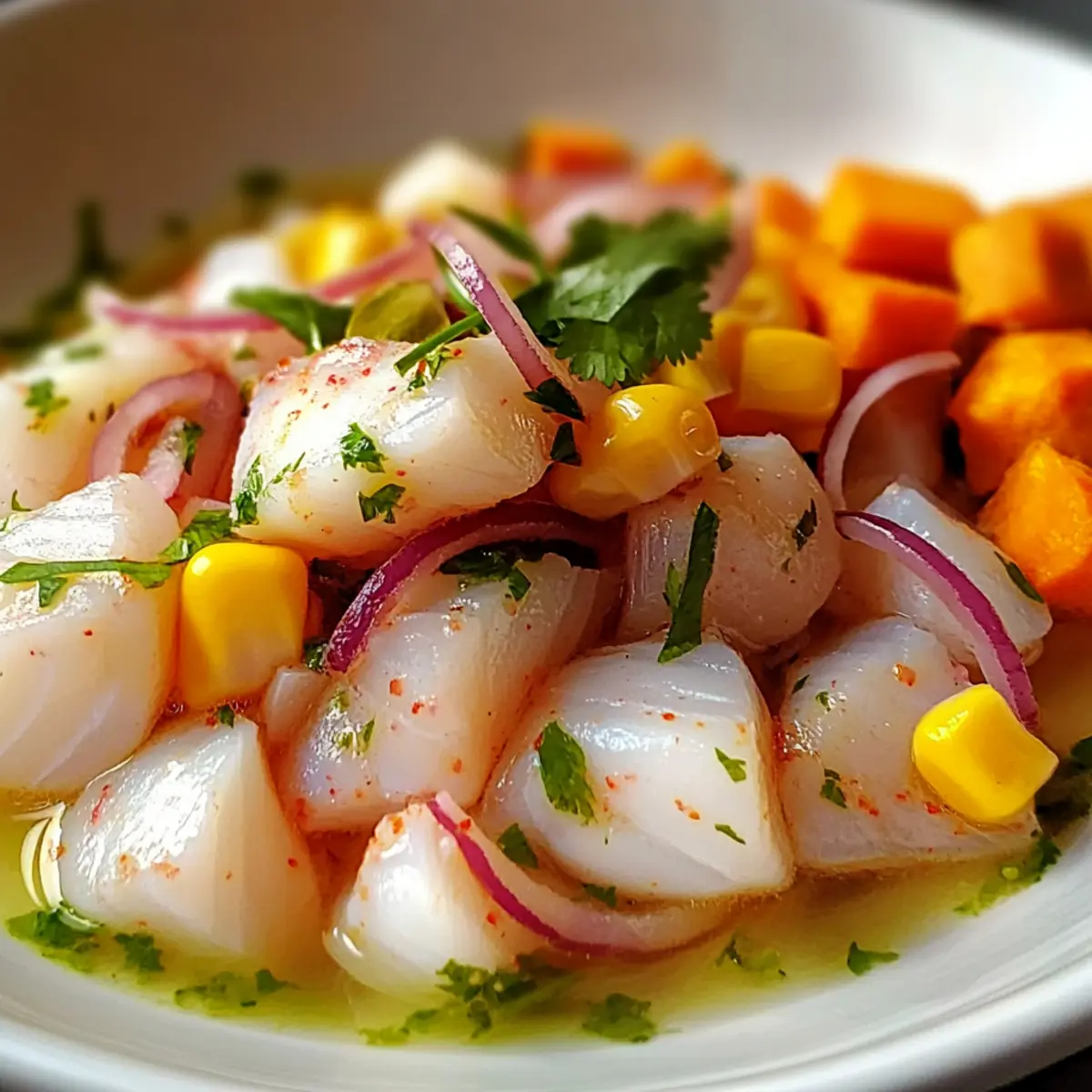 Dieses Rezept für klassisches peruanisches Ceviche mit Tigermilch verwandelt frische, hochwertige Zutaten in ein Geschmackserlebnis, das einfach unwiderstehlich ist.