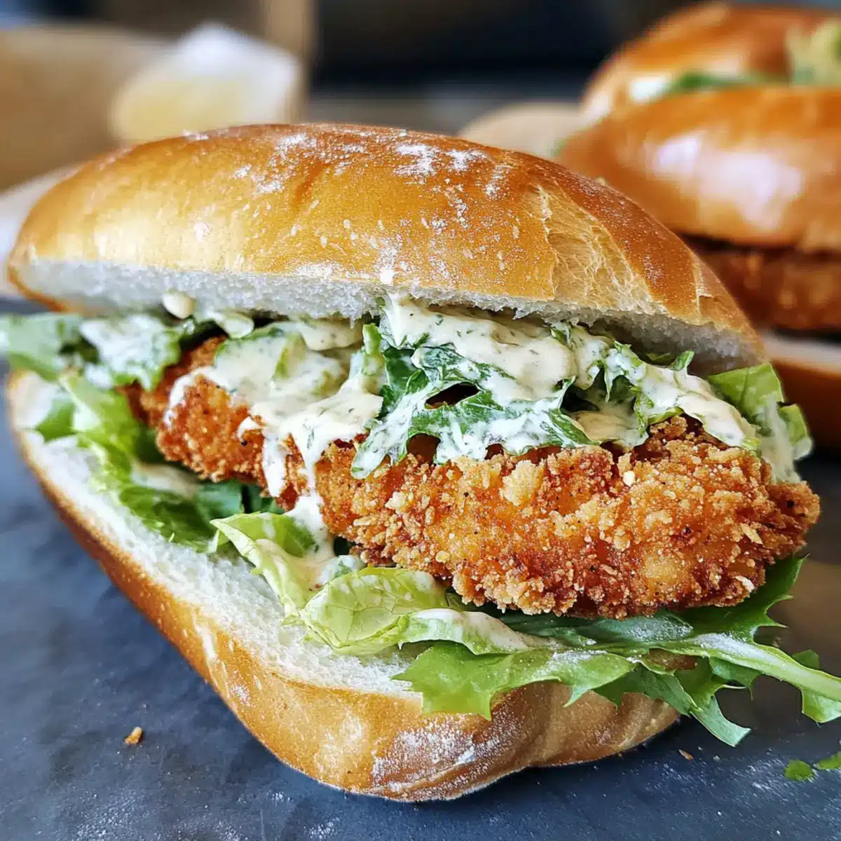 Knuspriges Hühner-Caesar-Sandwich mit Dressing