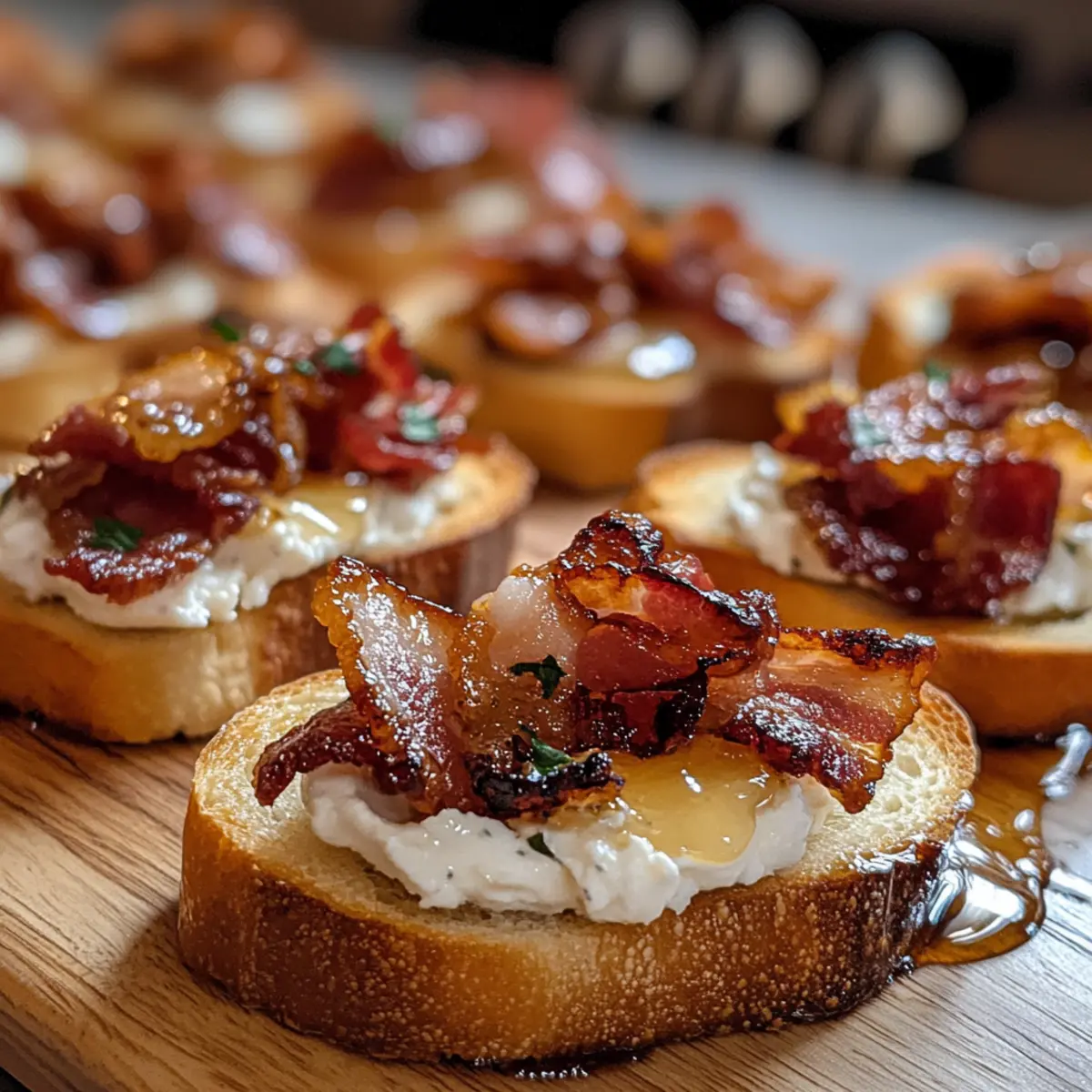 • Variationen ausprobieren: Experimentiere mit verschiedenen Toppings wie Hot Honey oder frischen Kräutern, um geschmackliche Abwechslung in deine Millionen Dollar Bacon Crostini zu bringen.