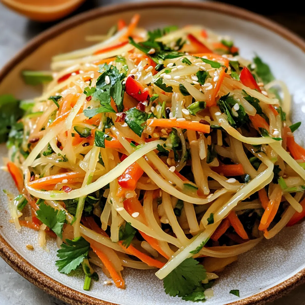 Frisch und knackig: Diese vietnamesische Salat-Sensation begeistert mit unerreichtem Crunch und einer Vielzahl von Aromen, die sofort ins Ohr fallen. Einfache Zubereitung: Mit nur wenigen Zutaten aus dem Vorratsschrank ist der Salat schnell gemacht und eignet sich hervorragend für Gäste. Vielseitig und anpassbar: Du kannst je nach Vorliebe mit verschiedenen Kräutern oder Gemüsesorten spielen, um deinen ganz persönlichen Twist zu kreieren. Gesund und nahrhaft: Vollgepackt mit Vitaminen und Ballaststoffen bleibt dieser Salat eine leichteste Wahl. Perfekt für jeden Anlass: Ob bei Sommerfesten oder als tägliche Beilage – dieser Salat zieht alle Blicke auf sich und sorgt für Freude. Entdecke die Vielfalt und Frische, die dein Kocherlebnis bereichern kann, und genieße die begeisterten Rückmeldungen deiner Familie und Freunde!