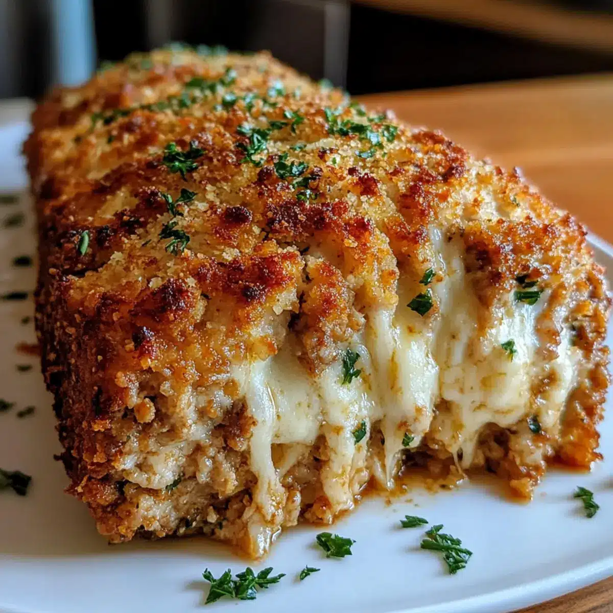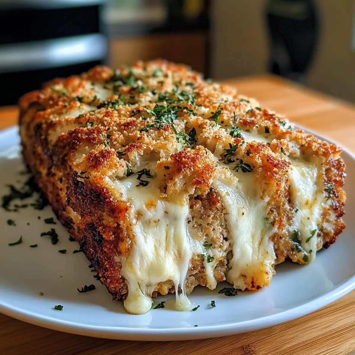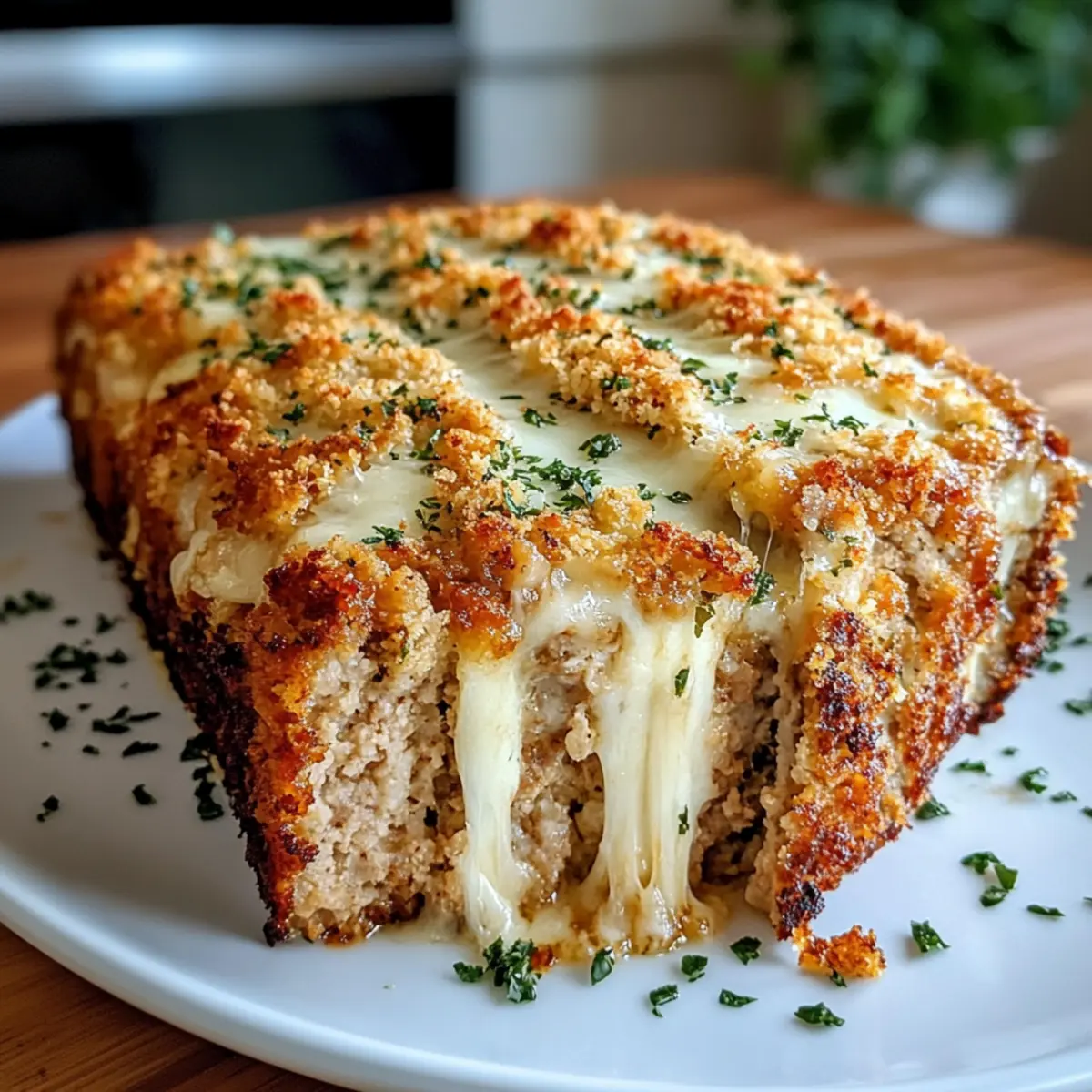 Saftiger Parmesan Hähnchen Fleischlaib mit Mozzarella