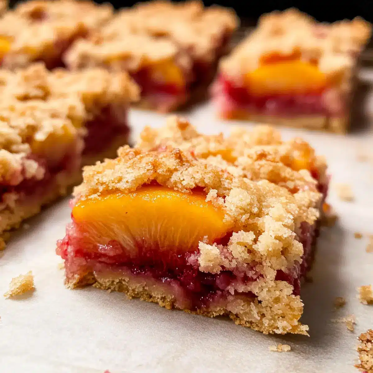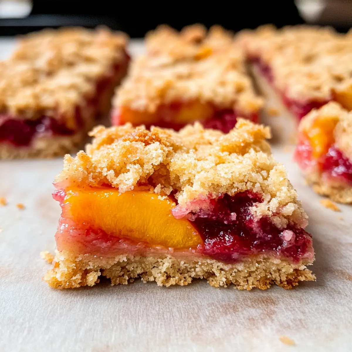 Wenn du Allergien gegen Nüsse hast, empfehle ich, die gehobelten Mandeln durch Sonnenblumenkerne zu ersetzen oder sie ganz wegzulassen. Für eine glutenfreie Variante kannst du Allzweckmehl durch ein glutenfreies Mehl austauschen. Diese Anpassungen ermöglichen es vielen Menschen, die köstlichen Pfirsich- und Himbeer-Krümelriegel zu genießen, ohne sich Sorgen um Allergien machen zu müssen.