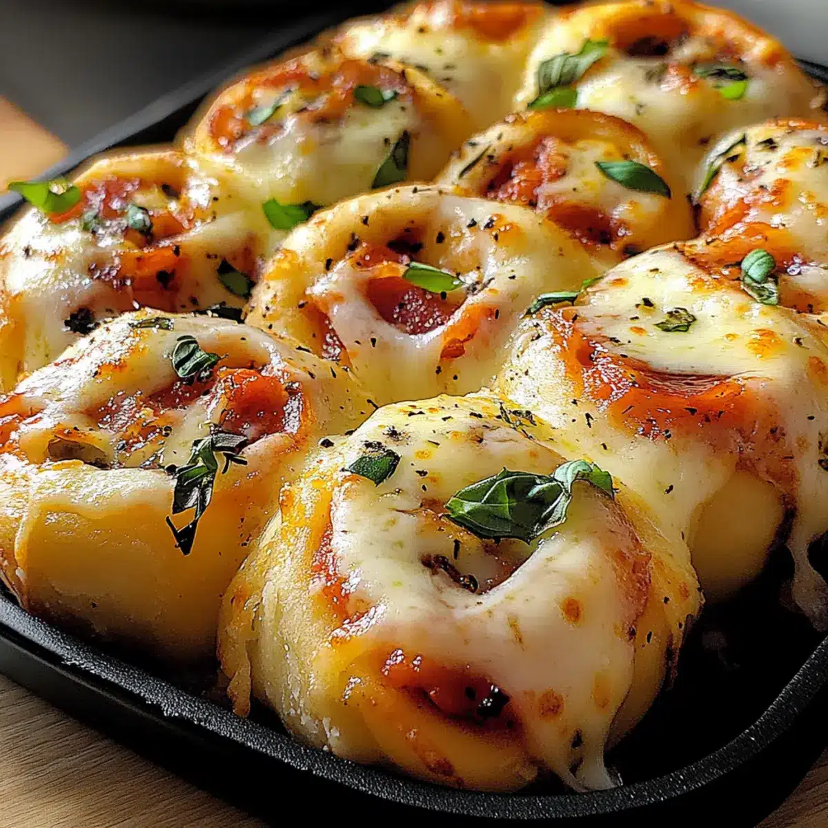 Wiedererwärmen: Um die Pizza-Rollen aufzuwärmen, erhitze den Ofen auf 180°C und backe sie für etwa 10 Minuten, bis sie wieder knusprig und warm sind.