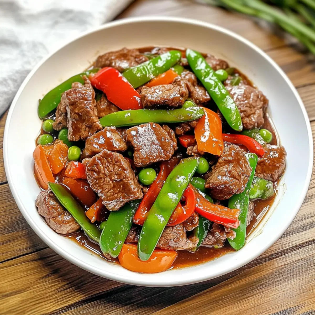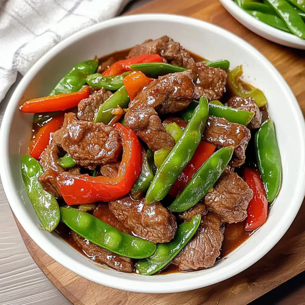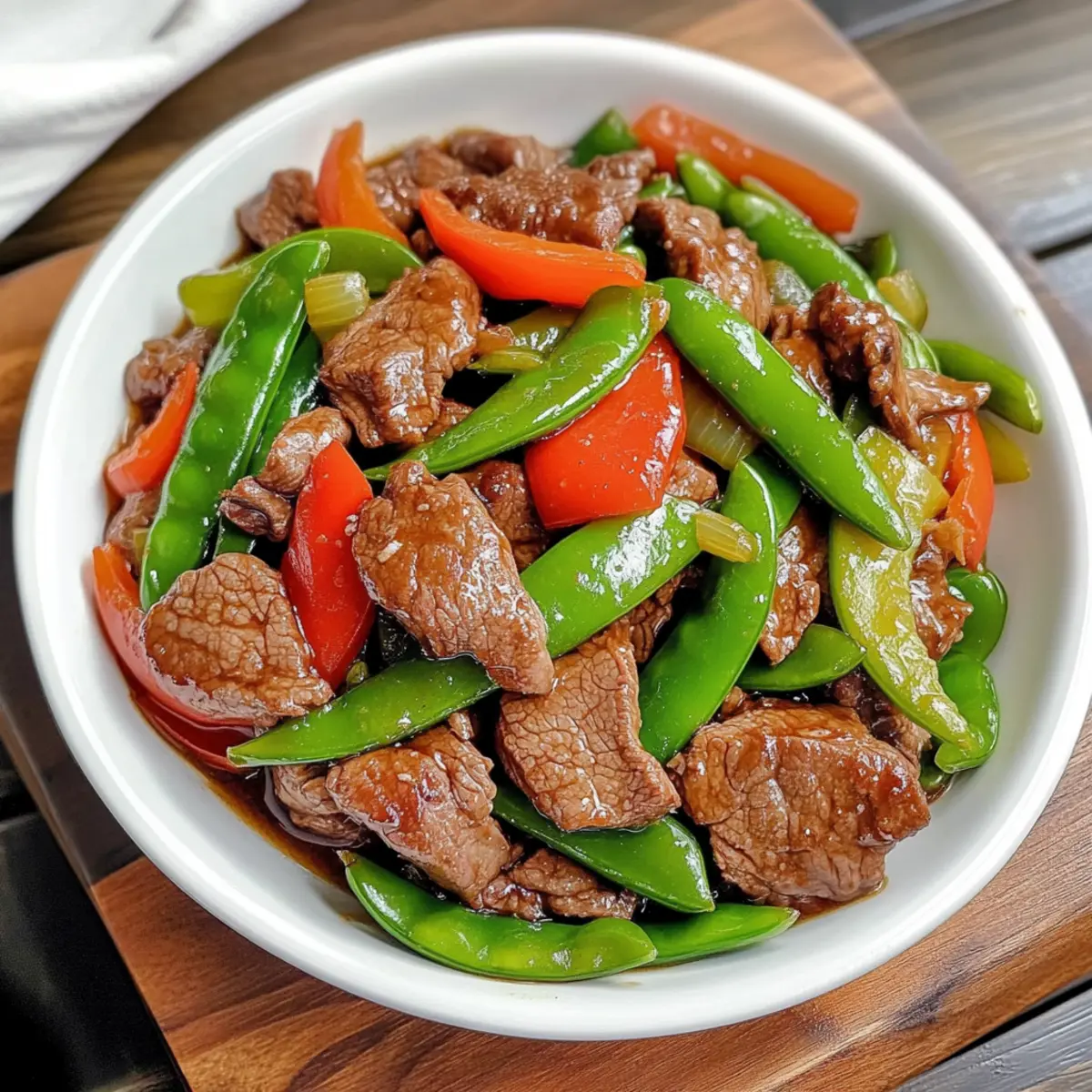 Lass dich von diesem Rindfleisch mit Schneerbsen und Paprika Pfannengericht verführen und genieße die Aromen!