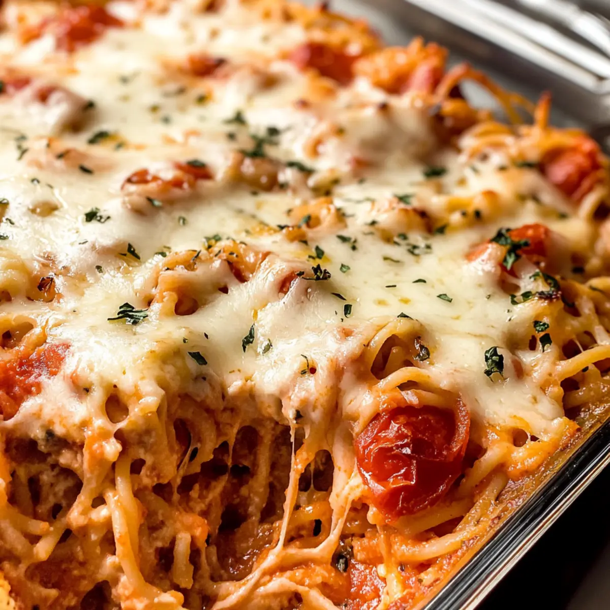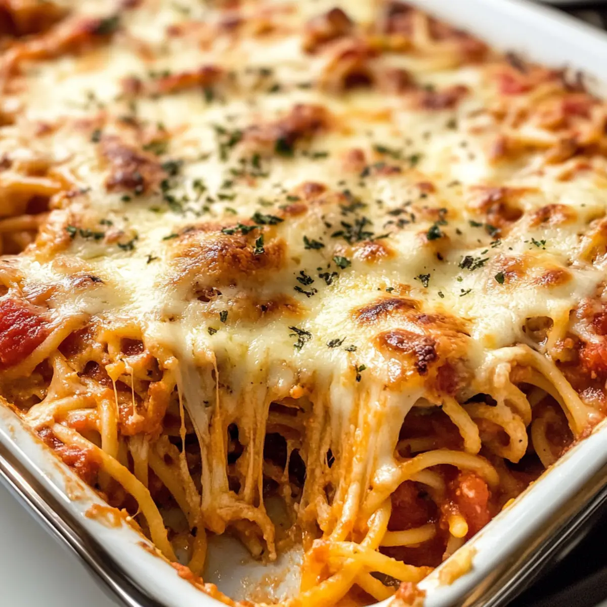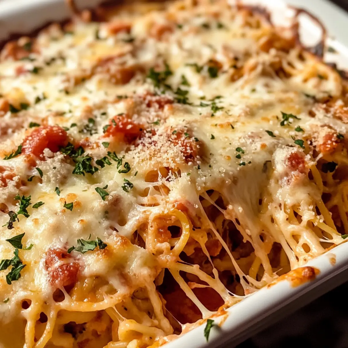 Aufwärmen: Erhitzen Sie den Auflauf im Ofen bei 180 °C (350 °F) für etwa 20-25 Minuten, bis er vollständig durchgewärmt ist.🧀 Genießen Sie den köstlichen Geschmack des Spaghetti-Auflaufs mit Frischkäse!