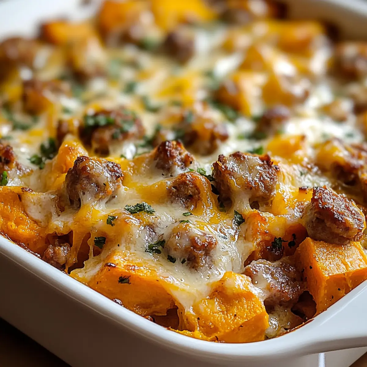 Süßkartoffel- und Würstchenauflauf für den perfekten Herbst