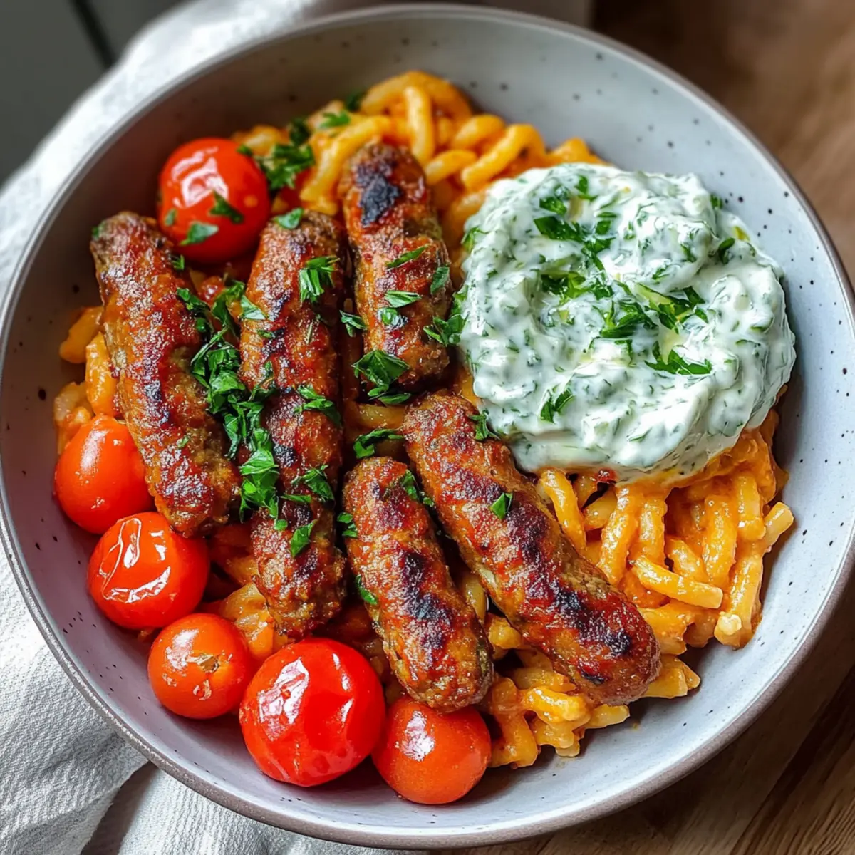 In einem kleinen, mediterranen Restaurant am Strand, wo die Luft nach Gewürzen und frisch zubereiteten Speisen duftet, hatte ich einmal das Vergnügen, Tomaten Kritharaki mit veganen Cevapcici und Tzatziki zu genießen. Diese Kombination aus zartem Kritharaki, würzigen Cevapcici und erfrischendem Tzatziki ist nicht nur ein schmackhaftes Erlebnis, sondern auch extrem einfach zuzubereiten. In nur 30 Minuten steht ein gesundes und köstliches Abendessen auf dem Tisch, das alle Hindernisse eines schnellen Snack-Sünden lebenslang überwindet. Was mir besonders gefällt: Man kann die Zutaten nach Belieben anpassen und seiner Kreativität freien Lauf lassen! Lust auf einen schnellen, veganen Klassiker, der eindrucksvoll aussieht und jedem schmeckt? Dann scrollen Sie weiter, um zu erfahren, wie Sie dieses Rezept zaubern können!