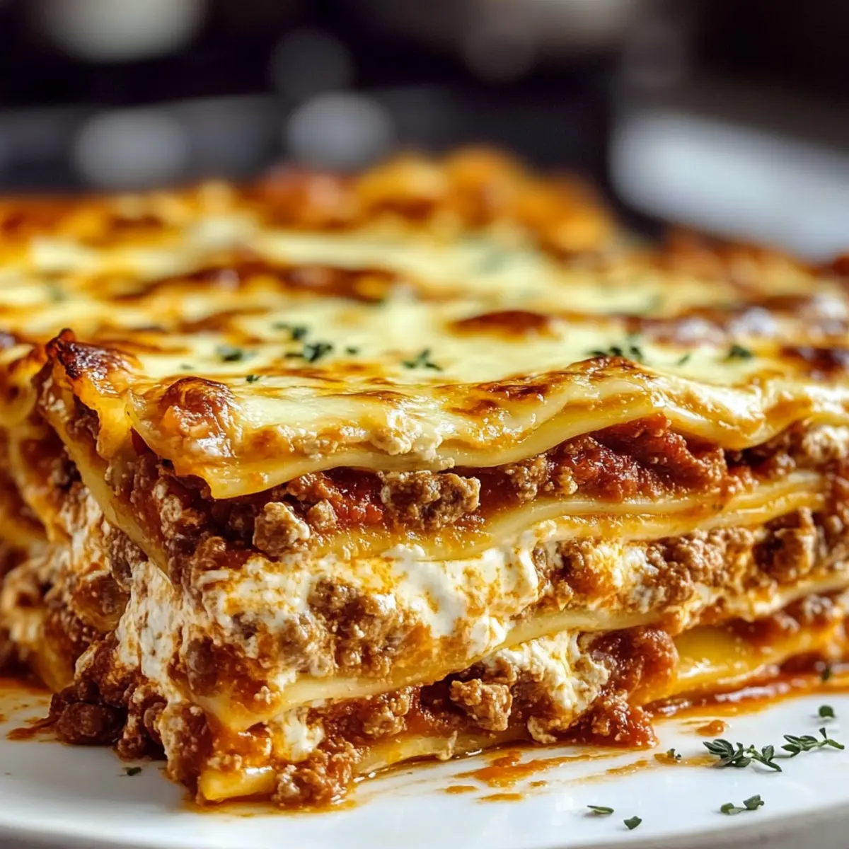Perfekte Texturen: Die zarten Lasagneschichten treffen auf das schmelzende Käse-Topping und die reichhaltige Füllung – ein wahrer Gaumenschmaus.