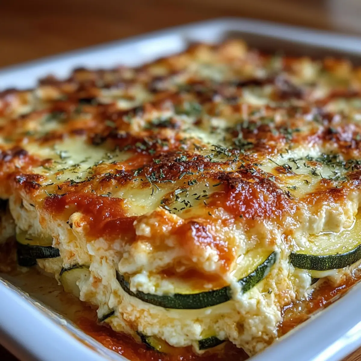 Schichten des Glücks: Die harmonischen Lagen aus Zucchini und Hüttenkäse bieten nicht nur eine köstliche Kombination, sondern auch eine aufregende Textur.